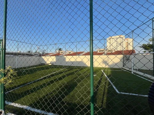Quadra poliesportiva com grama sintética