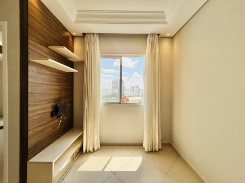 O imóvel possui 47 m² muito bem distribuídos, com 2 dormitórios, 1 banheiro, e ambientes funcionais que aproveitam cada espaço. Conta com móveis planejados, cooktop, coifa, aquecedor a gás, painel para TV, cortinas, acabamento em gesso e luminárias, oferecendo um padrão moderno e pronto para morar.