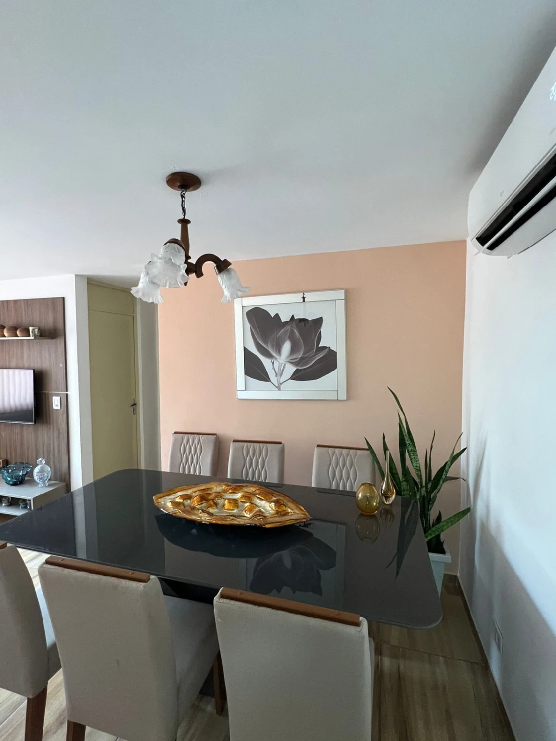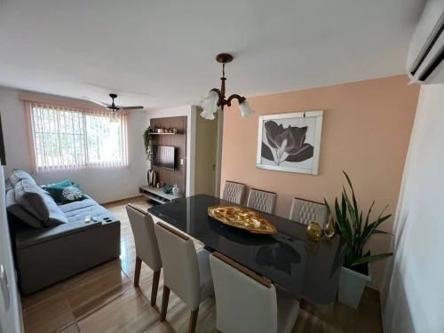 Ambientes Sociais: Sala ampliada dividida em 02 ambientes (TV e Jantar), equipada com ar-condicionado para o seu máximo conforto.