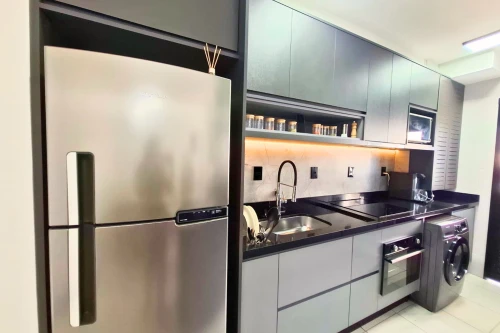 O grande diferencial deste apartamento é que ele será entregue totalmente mobiliado e equipado, exatamente como apresentado nas fotos. Permanecem no imóvel os planejados de primeira linha, cooktop, forno embutido, micro-ondas, geladeira, máquina de lavar roupas, TV, purificador de água, além de mesa com cadeiras, sofá, cama, iluminação completa e decoração. Trata-se de um imóvel realmente pronto para entrar e morar, sem necessidade de qualquer investimento adicional.