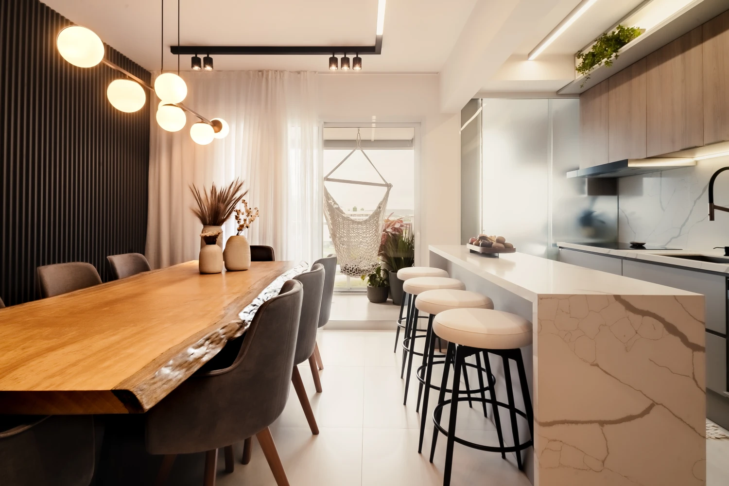 Apartamento totalmente automatizado com Alexa, oferecendo controle inteligente de iluminação e dispositivos — uma combinação perfeita entre tecnologia, comodidade e modernidade.