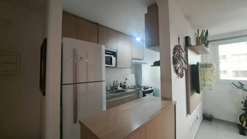 O condomínio conta com elevador, bicicletário, playground, salão de festas, churrasqueira no condomínio e salão de jogos. O imóvel é equipado com área de serviço e armarios.