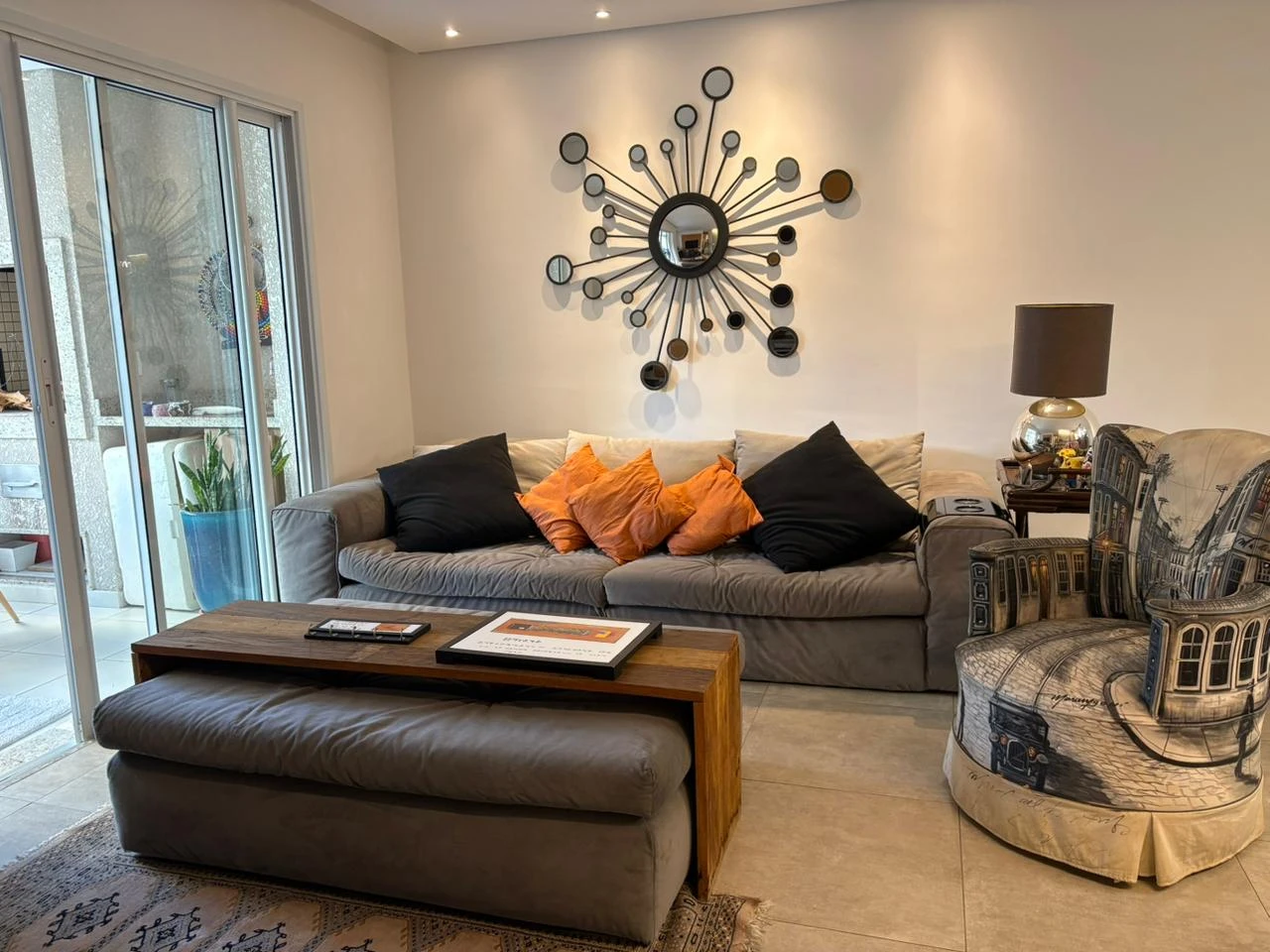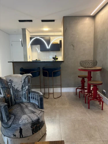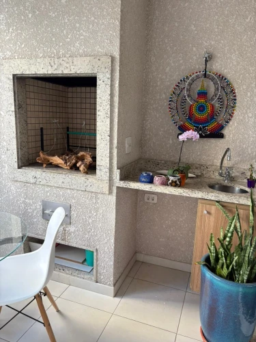 O imóvel é equipado com área de serviço, armários, sacada e varanda gourmet.