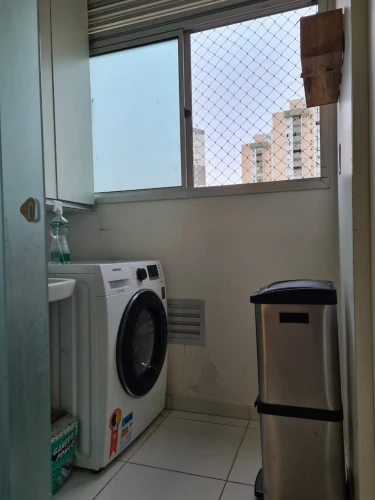 Apartamento com piso porcelanato, persianas nas janelas, planejados nos quartos, cozinha, lavanderia, banheiro.
