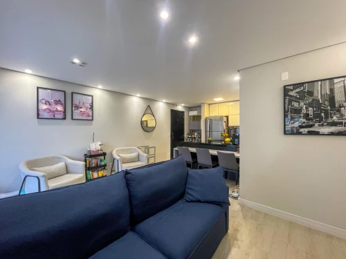 Lindo apartamento de 2 quartos, sendo 1 suíte, conta com uma espaçosa sala, 2 banheiros, cozinha planejada, área de serviço e o melhor de tudo: 2 vagas de garagem para sua comodidade. Com uma área de 75,00 m2, este imóvel é perfeito para quem busca conforto e praticidade.