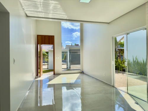 Casa de 136,23m² 3 dormitórios, sendo 1 suíte, cozinha, sala de estar, sala de jantar, banheiro social, churrasqueira, área de serviço, área aberta, garagem coberta para 2 carros, pátio todo cercado com portão eletrônico, amplo pátio nos fundos, porta principal ripada em garapeira com fechadura eletrônico, aberturas em PVC, Jardim, iluminação completa interna e externa, espera de água quente, gesso em toda casa.