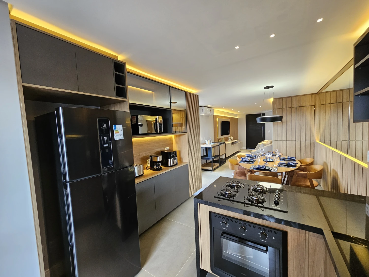 • Sala e cozinha integradas em conceito aberto, promovendo amplitude, fluidez e excelente iluminação natural