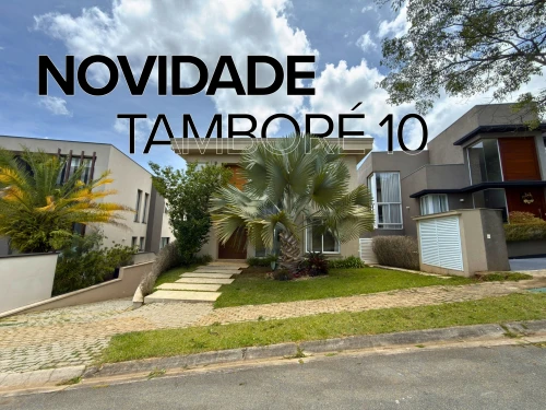 Casa para locação no Condomínio Residencial Tamboré 10. Conta com 571 m² de área útil e 490 m² de área total, 4 suítes, amplo living com sala de estar, sala de jantar e sala de TV, lavabo, cozinha repleta de armários planejados, despensa, área de serviço com lavanderia, suíte de funcionária, depósito, varanda gourmet, churrasqueira, piscina e 4 vagas cobertas de garagem.