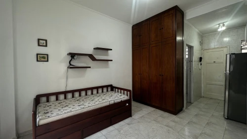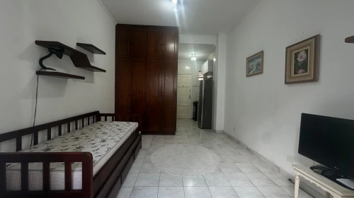 Excelente kitnet mobiliada à venda no Boqueirão, com vista mar e localização privilegiada a apenas 50 metros da praia. O espaço conta com dormitório e sala integrados, cozinha com gás natural, banheiro com box blindex e ponto para máquina de lavar. Não possui área de serviço. Há 1 vaga de garagem exclusiva para motos.