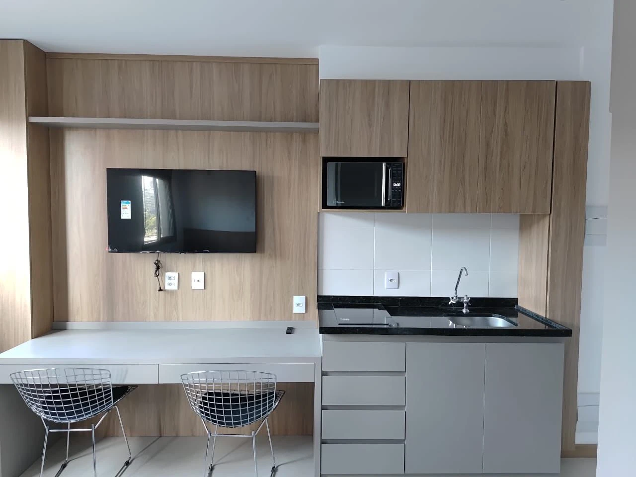 Diferencial Raro: Banheiro com janela própria, garantindo iluminação natural e ventilação permanente (um detalhe difícil de encontrar em studios compactos).