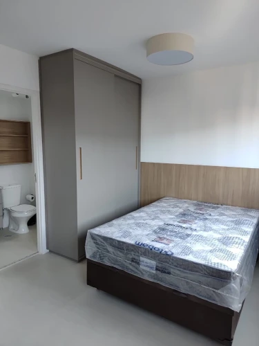 Totalmente Mobiliado: Equipado com eletrodomésticos essenciais e uma prática cama baú, otimizando cada centímetro de espaço.