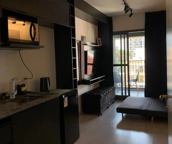 Studio bem localizado para aluguel em SP - São Paulo com 31m². O Studio possui 1 quarto e 1 banheiro. O condomínio conta com piscina, elevador, bicicletário, brinquedoteca, salão de festas, churrasqueira no condomínio, academia e salão de jogos. O imóvel é equipado com armarios, sacada e ar-condicionado. Totalmente Mobiliado.