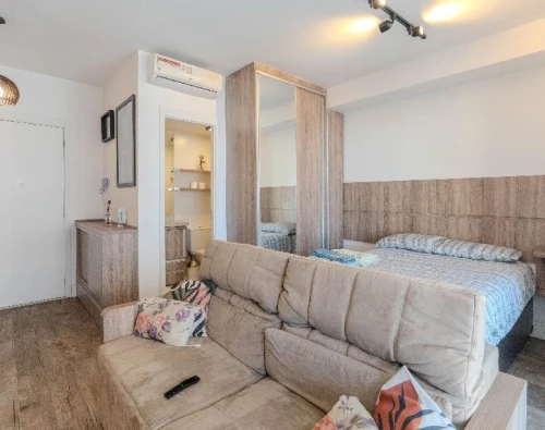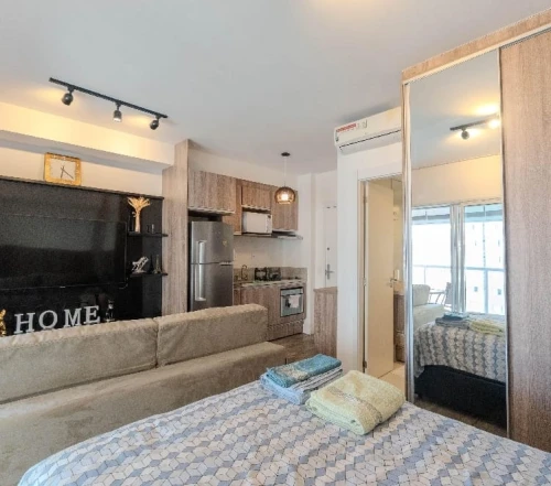 Studio bem localizado para aluguel em SP - São Paulo com 38m². O Studio possui 1 quarto, 1 vaga e 1 banheiro. O condomínio conta com piscina, elevador, bicicletário, brinquedoteca, playground, salão de festas, churrasqueira no condomínio, espaço pet, academia e salão de jogos. O imóvel é equipado com armarios, sacada e ar-condicionado.