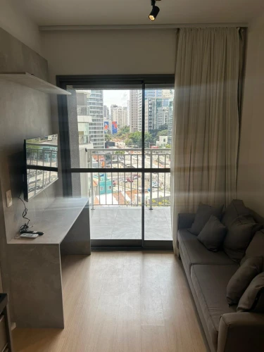 Stúdio no Nex One Itaim, com 26 m², no 9º andar, com 1 dormitório, banheiro, sacada, mobiliado, ar condicionado,